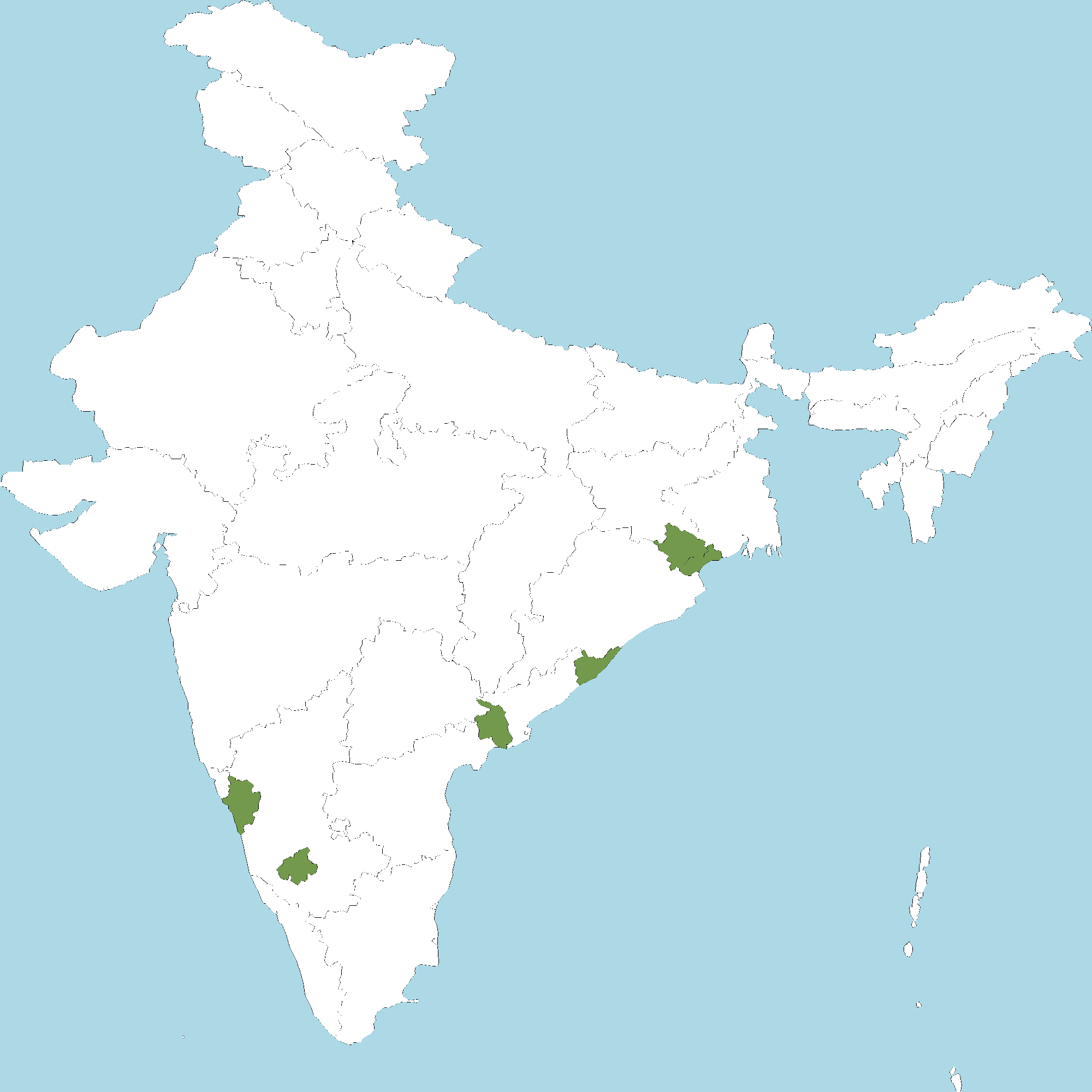 • Karnataka : Hassan district, Chikamagalur district, Shimoga district, Uttara Kannada district