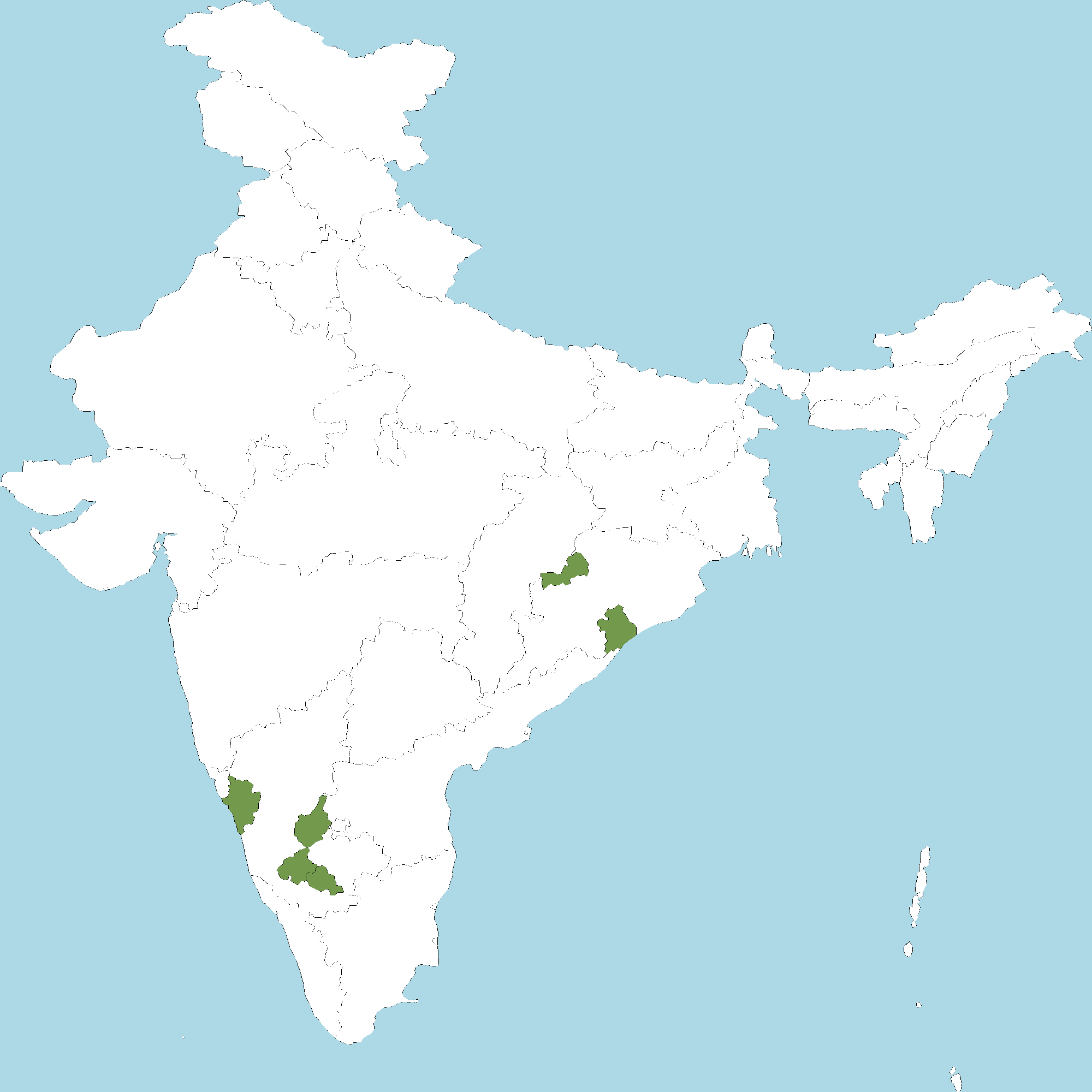 • Karnataka : Chikamagalur district, Hassan district, Mysore district, Mandya district, Tumkur district, Uttara Kannada district, Chitradurga district
