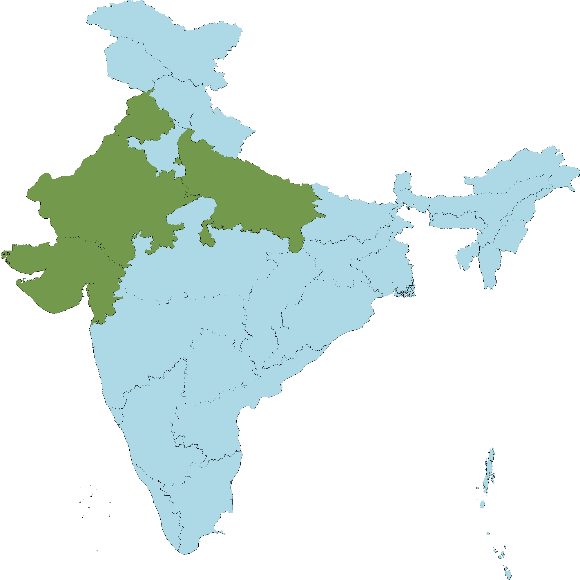• Rajasthan : Jaisalmer district, Barmer district, Bikaner district, Jodhpur district