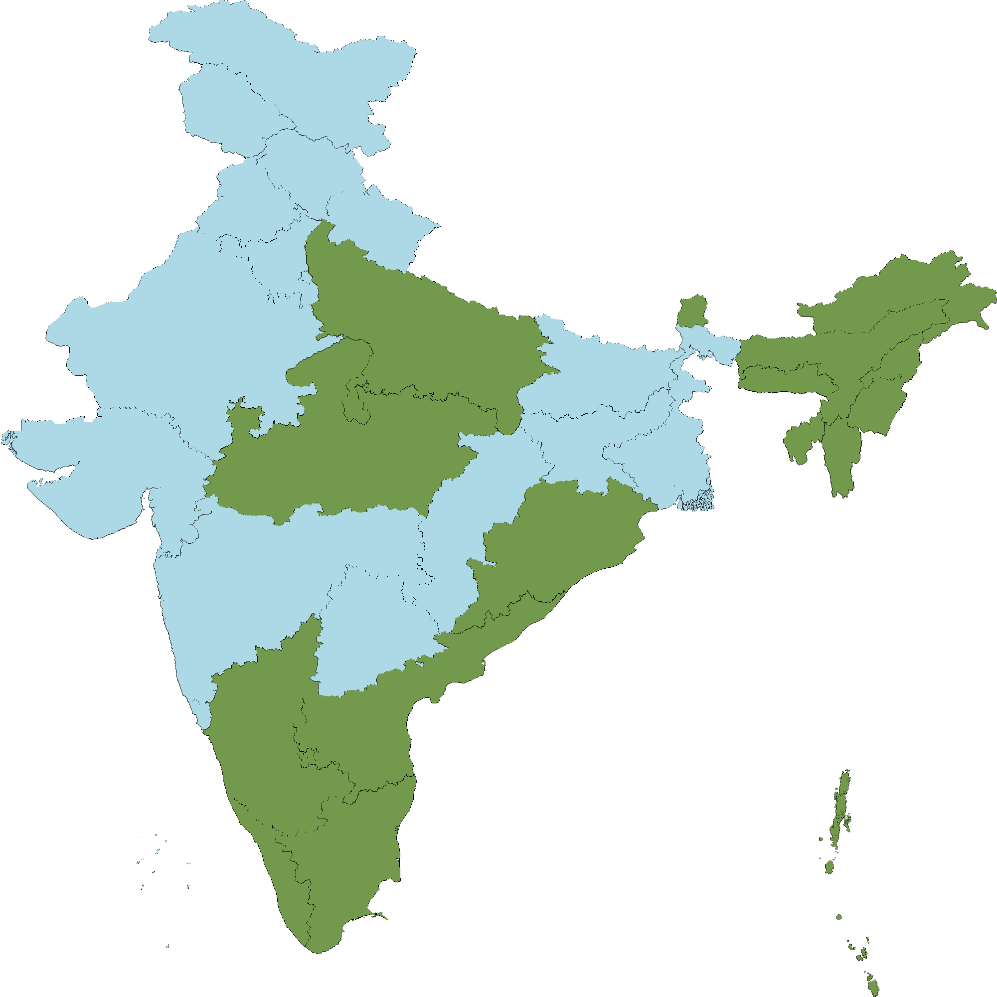 - Karnataka : Ballari district, Chikkamagaluru district, Chitradurga district, Hassan district, Kodagu (Coorg) district, Kolar district, Mysuru district, Shivamogga district, Udupi district, Dakshina Kannada district, Uttara Kannada district
