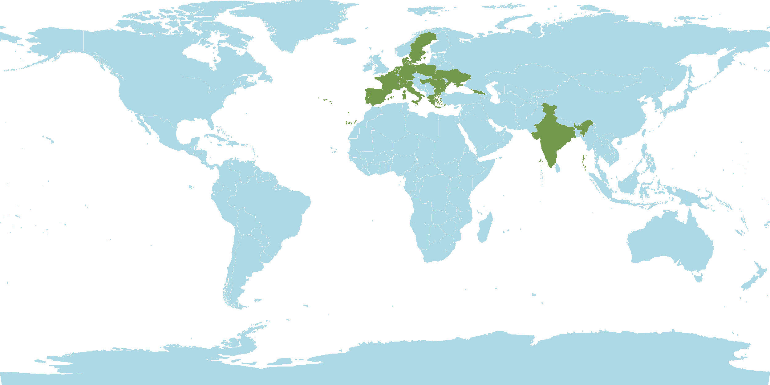 - World Distribution : North America and Austria, Belgium, Bulgaria, Czechoslovakia, Denmark, France, Germany, Greece, Hungary, India, Italy, Krym, Netherlands, New Zealand North, New Zealand South, Poland, Portugal, Romania, Sardegna, Spain, Sweden, Switzerland, Ukraine